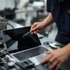 - Test Final : L’ordinateur est testé une dernière fois pour s’assurer que l’ouverture et la fermeture de l’écran (charnières) se font correctement et que l’affichage reste stable.