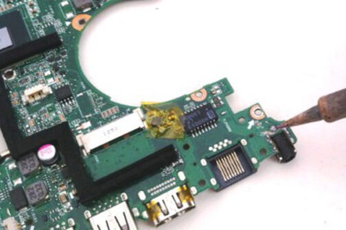 | Connecteur Soudé (Directement sur la Carte Mère) | Cette opération demande une grande expertise : le technicien utilise des outils de micro-soudure (station à air chaud ou fer à souder de précision) pour dessouder le Jack défectueux sans endommager les pistes du circuit imprimé, puis soude le nouveau connecteur d’alimentation de remplacement. |